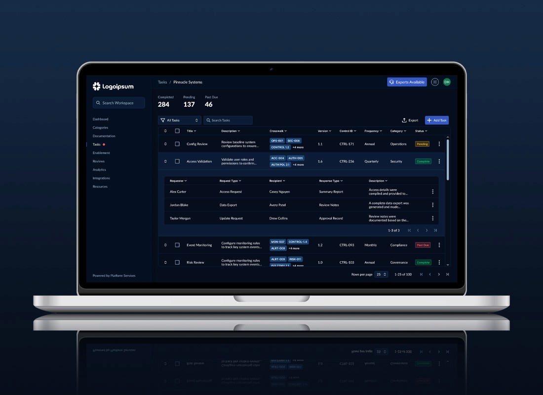 Led the end-to-end redesign and frontend implementation of a mission-critical compliance SaaS dashboard, translating complex regulatory data and rule-driven workflows into intuitive, scalable UI patterns. Improved workflow clarity and reduced cognitive load by standardizing interaction models and simplifying navigation hierarchy. Drove UX strategy and sprint planning while partnering closely with engineering on frontend implementation and RESTful API integration throughout delivery.