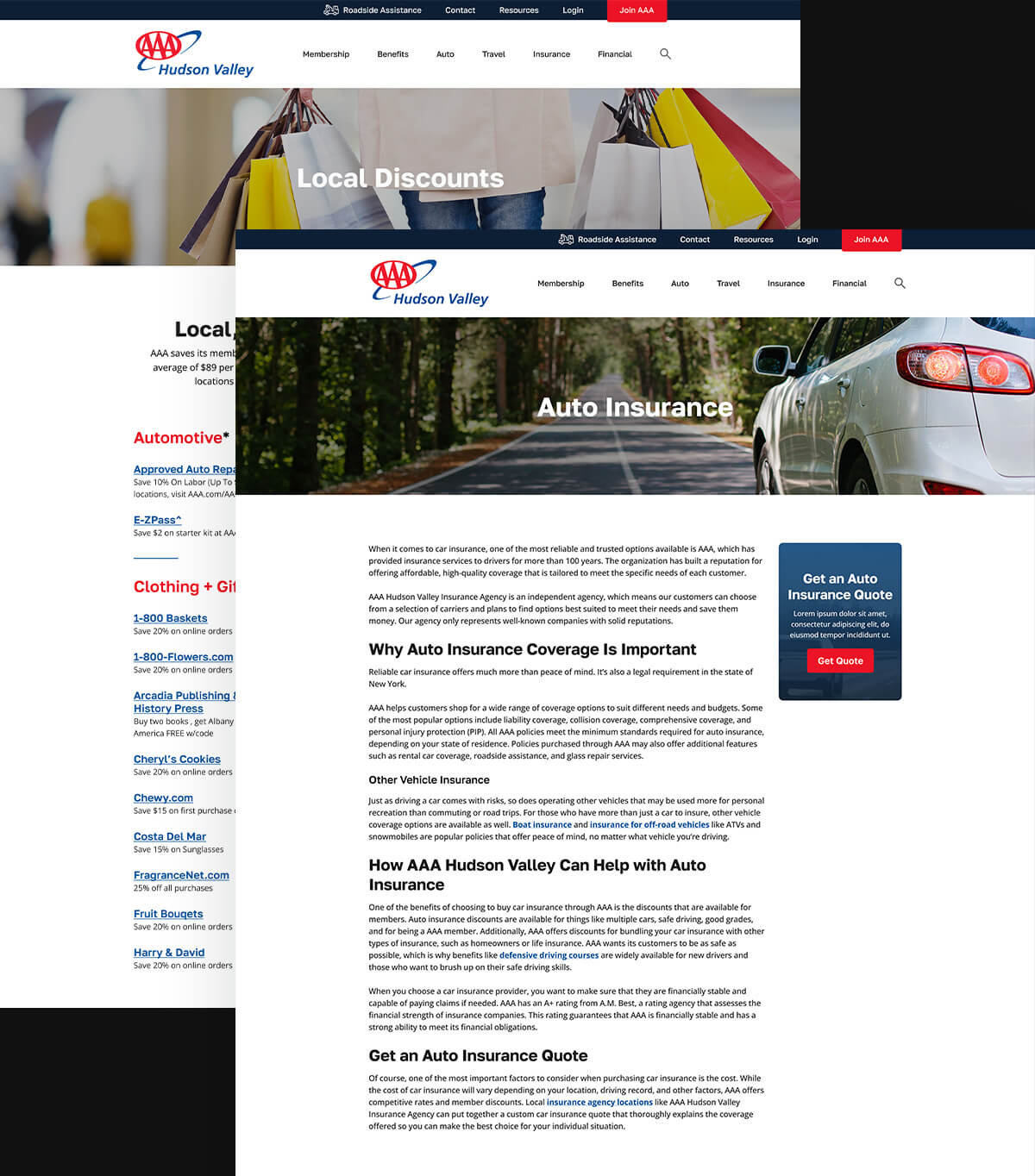 AAA Hudson Valley was in need of a new website; one that would shine light on not only its famous roadside assistance, but also highlight the countless benefits of being an AAA member.
