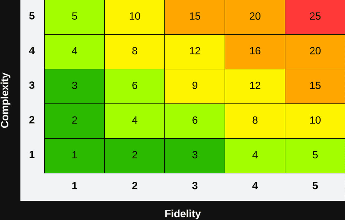 Fidelity Score × Complexity Score = Final Score (1–25)
