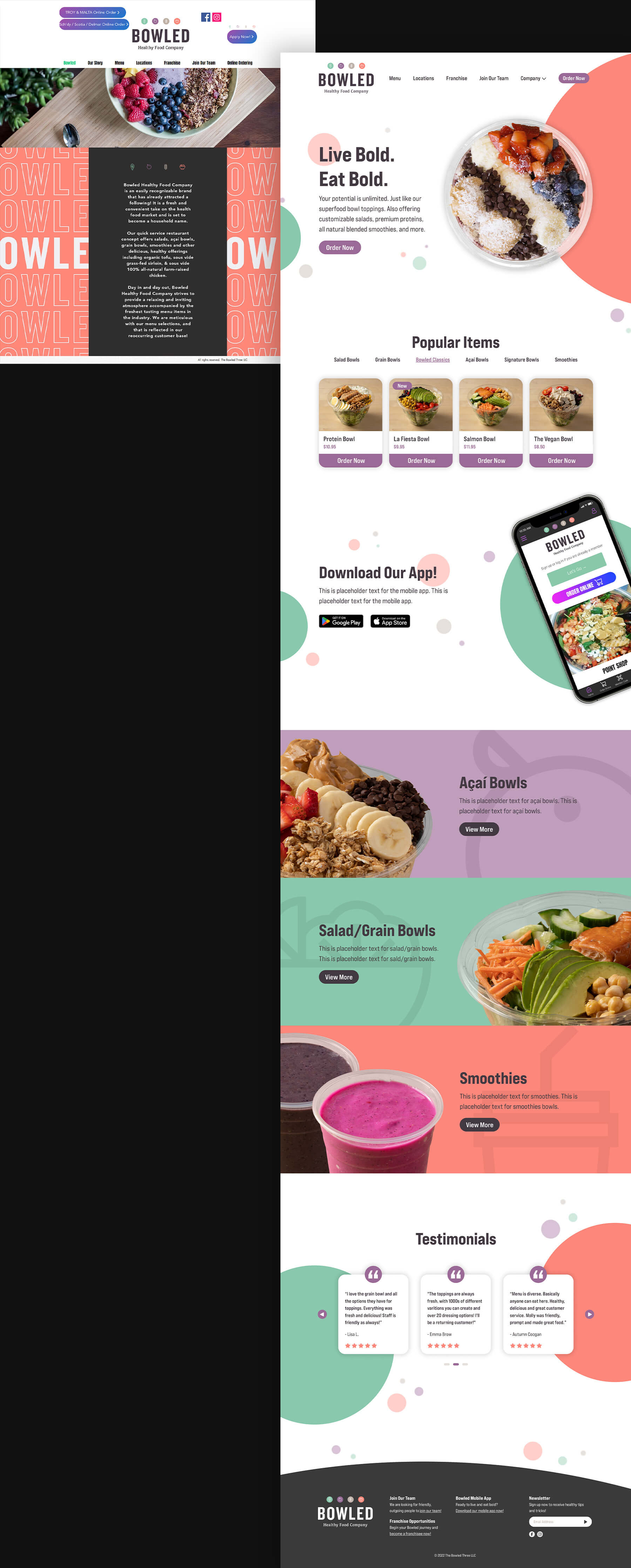 Bowled Co. was rapidly expanding its business from adding franchises all over the Capital Region to out of state. They needed a website that would reflect their fresh in-store vibe and provide a more streamlined online ordering experience for customers.